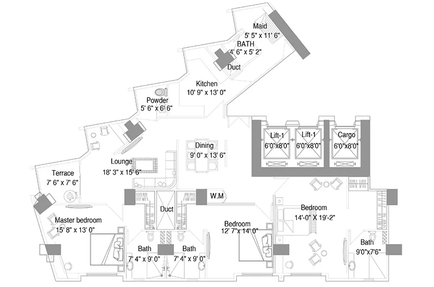Tribeca Karachi features well-planned floor layouts designed to support modern urban lifestyles. With a focus on space optimization and functionality, each unit offers a comfortable and practical living environment within a premium mixed-use development.